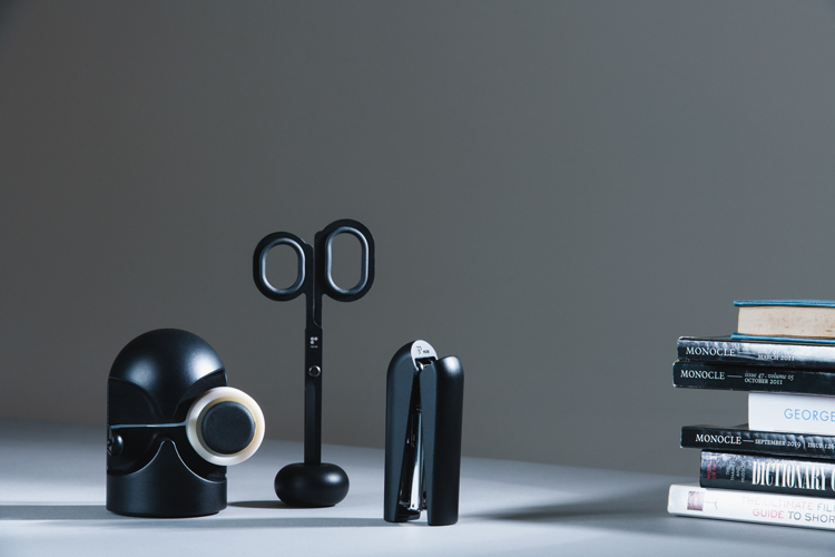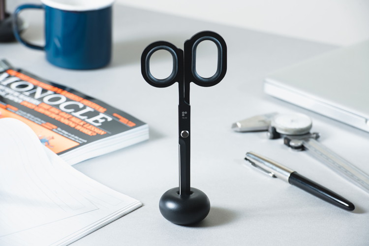 鑄鋅的沈穩底座,讓黑色的剪刀可站立收納於桌面上,細看的幽默表情,可在居家辦公時療癒心情。