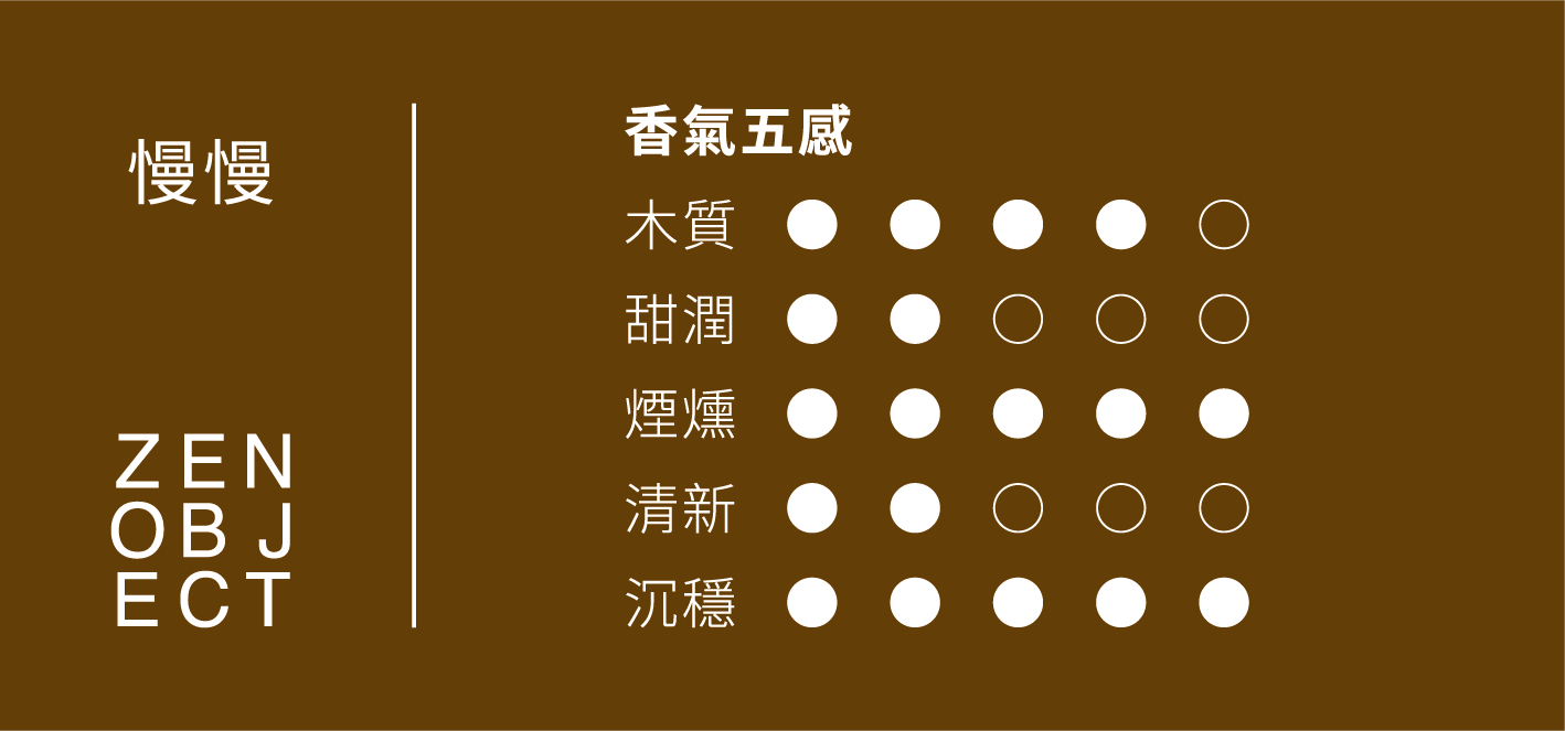 以天然沉香粉壓製,氣味深沉醇厚,帶樸實煙燻感。